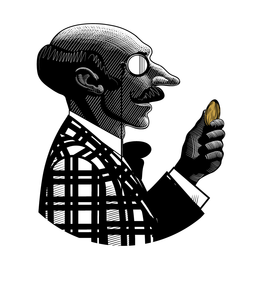 Zugegeben ... das Monokel ist schon etwas extrovertiert, aber nur so kann unser Onkel Almond sich von der Qualität jeder einzelnen Mandel überzeugen.